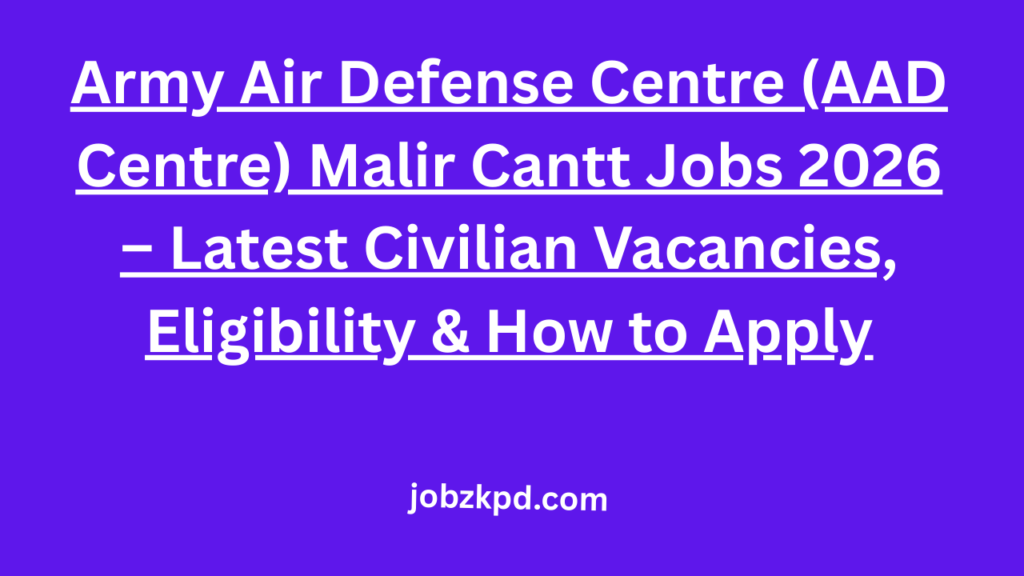 The Army Air Defense Centre (AAD Centre), Malir Cantt, Karachi has announced multiple civilian job opportunities for 2026. These vacancies are aimed at hiring technical, clerical, and support staff to assist the operational and administrative functions of Pakistan Army’s Air Defense Wing.